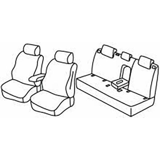 navadni sprednji sedeži, sprednji vzglavniki aktivni, zadnji naslon deljiv 2/3+1/3, zadnji sedež v enem kosu, sprednji naslon za roke konzolni (ni povezan z naslonjalom), isofix povezan z oblazinjenjem, tretji (srednji) pas izstopa iz naslonjala, zadnji naslon za roke, airbag, zadnji vzglavniki so pogreznjeni (2+1)