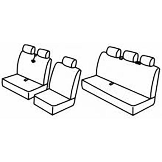 1. vrsta: 1+2, voznikov sedež navaden, dvojno naslonjalo in enodelni sedež, pas na sredini zgornjega dela sovoznikovega naslonjala, 2. vrsta: zadnje naslonjalo in enodelni sedež, 3 varnostni pasovi zadaj naslonjalo, vzglavniki zadaj so normalni