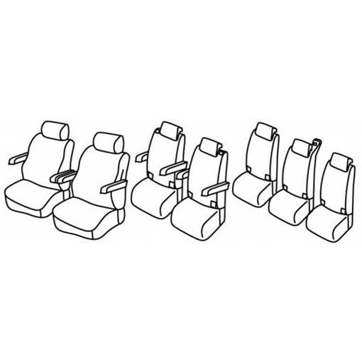 3 vrste sedežev, 1. vrsta: navadni sprednji sedeži, aktivni sprednji vzglavniki, 4 sprednji nasloni za roke pritrjeni na naslonjala, zračna blazina, plastične zložljive mizice na zadnji strani sprednjih naslonjal, 2. vrsta: 2 ločena sedeža, isofix pritrjen na oblazinjenje, ročaji za zlaganje naslonjal, 4 zadnji nasloni za roke pritrjeni na naslonjala, 3. vrsta: zadnji naslon in sedež deljiv 1/3+1/3+1/3, tretji (srednji) pas izstopa iz srednjega naslonjala, isofix pritrjen na oblazinjenje.